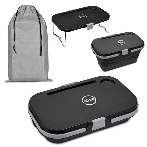 Fold-out legs on lid convert into a stable picnic tray