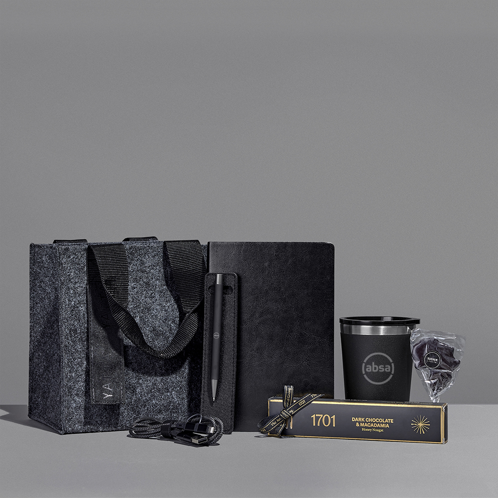 The Yatta range of hampers is expertly crafted to provide a delightful experience with a curated selection of premium items and edible treats. Elegantly presented in a Yatta drawstring bag, this hamper is further encased in a durable Dark Grey RPET felt gift bag.